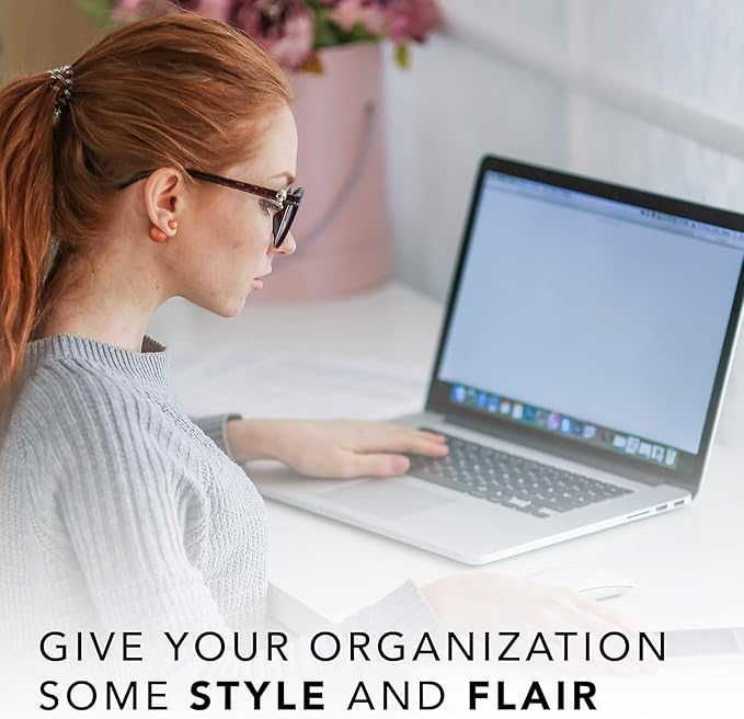 - DESIGNER STYLE Say goodbye to boring manila folders by accessorizing your desk with this colorful, chic set of files. These fashionable folders come in an assortment of colors, patterns, and phrases. Decorative office supplies make great gifts for friends, family, and co-workers.