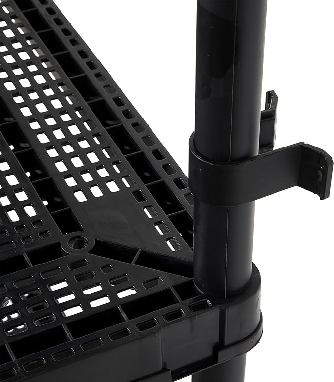 - Long-Lasting Use: Constructed from durable plastic, this utility rack resists rusting, denting, and peeling; No tools required for assembly; Wall mount this garage shelving using the included brackets