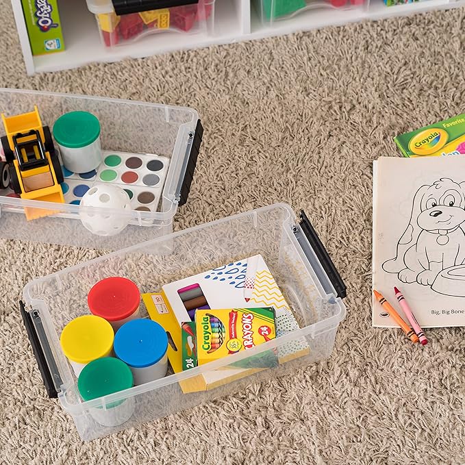 - STACKABLE STORAGE: Maximize space in your home, office, or playroom. The securely locking lid keeps items safe and allows bins to be stacked on top of each other.