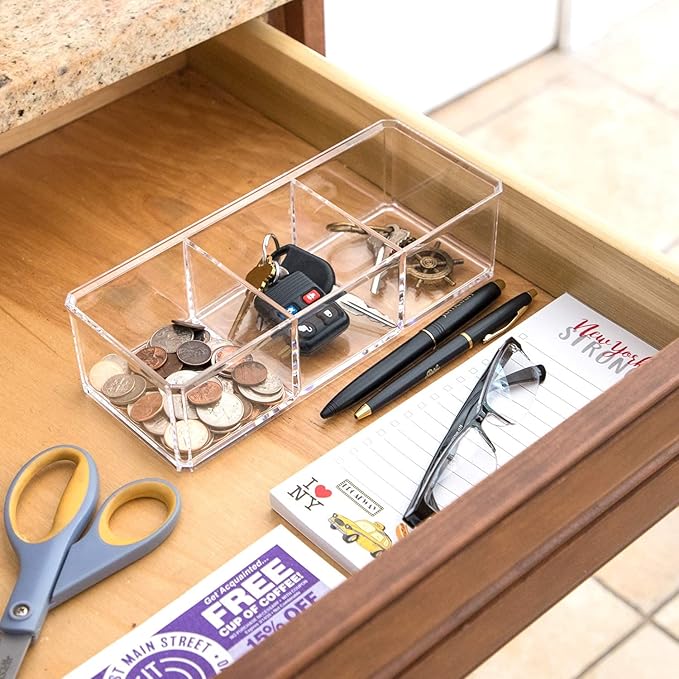 Isaac Jacobs Clear Acrylic 3 Section Organizer- Three Compartment Drawer Tray and Storage Solution for Office, Bathroom, Kitchen, Supplies, and More (Clear)