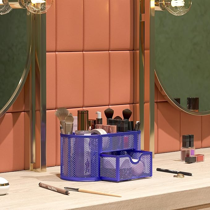 - Wire Mesh Desk Organizer: Crafted from premium mesh metal, this organizer withstands daily use in home offices, classrooms, or makeup vanities. Rust-resistant and easy to clean with a soft cloth.