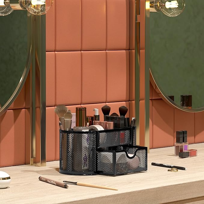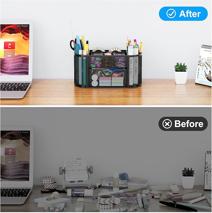 - Wire Mesh Desk Organizer: Crafted from premium mesh metal, this organizer withstands daily use in home offices, classrooms, or makeup vanities. Rust-resistant and easy to clean with a soft cloth.