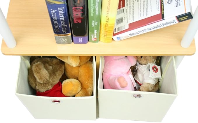 Furinno Go Green 3-Tier 2-Bin Multi-Purpose Storage Shelf (Set of 2), Beech