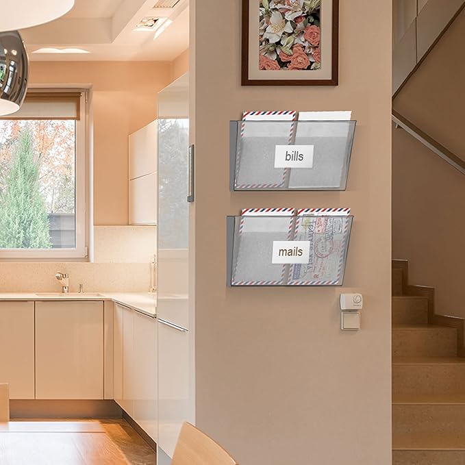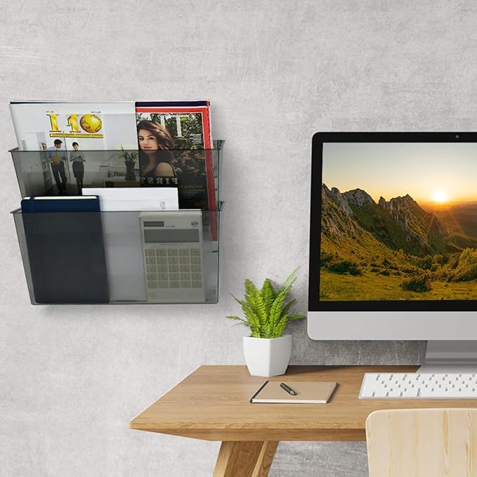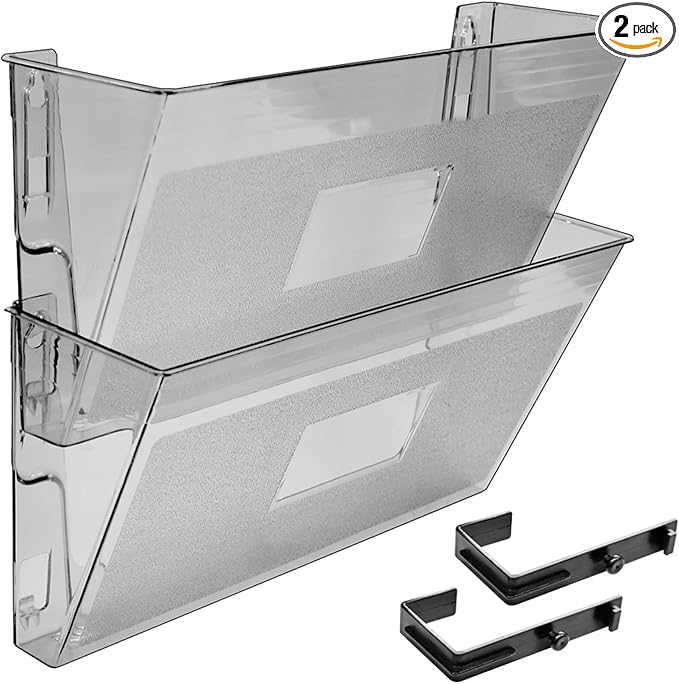 Acrimet Wall Mount Pocket File Organizer Holder Modular Letter Size A4 Plastic (Hangers Included) (Smoke Color) (2 Pack)