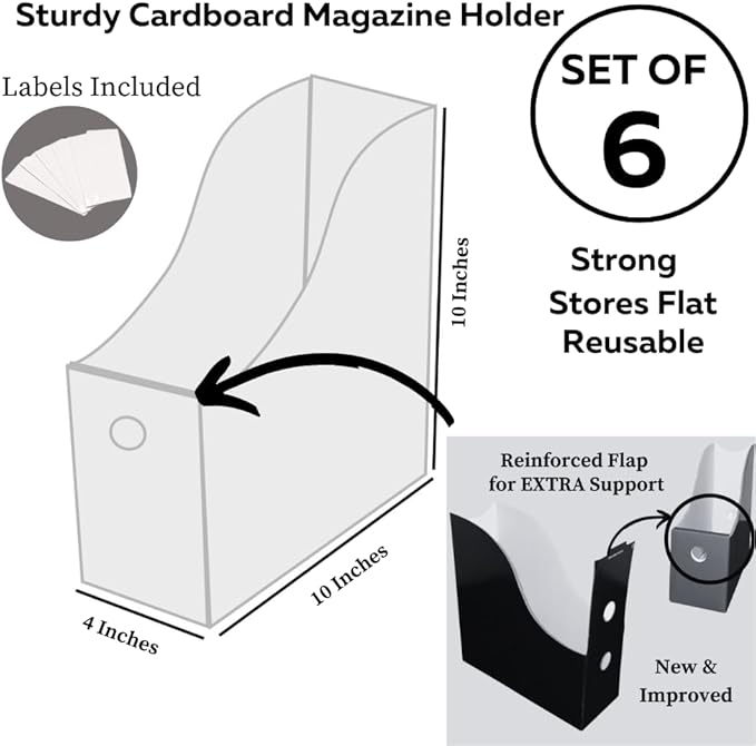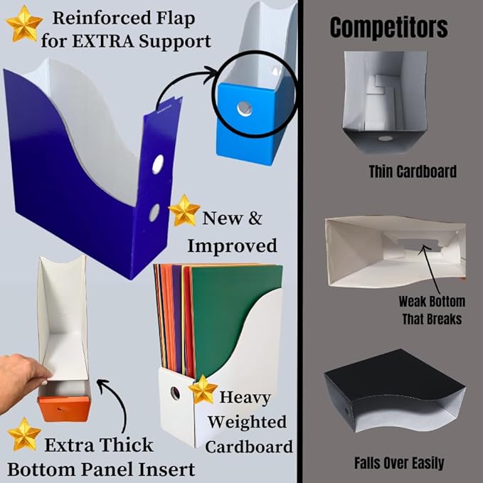 - STURDY REINFORCED FRONT FLAP FOR EXTRA SUPPORT : No more desk clutter. Made of heavy duty coated cardboard. Holds standard letter size files and magazines. Sold on Amazon for over 9 years