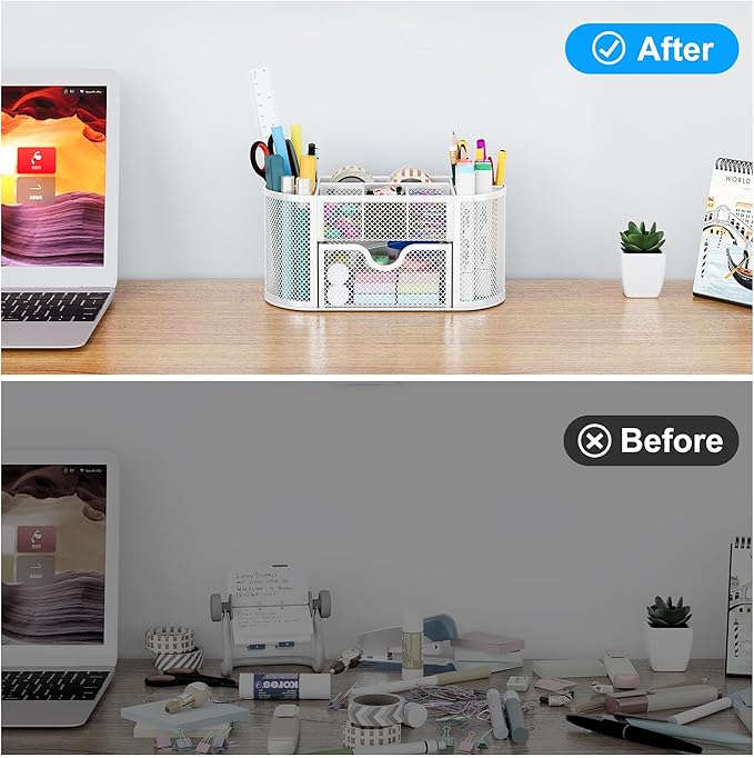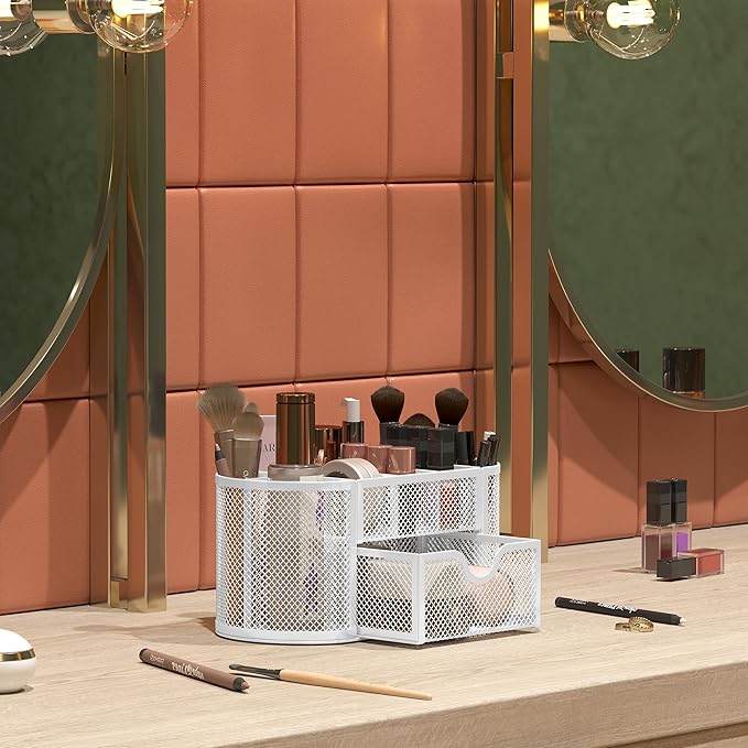 - Wire Mesh Desk Organizer: Crafted from premium mesh metal, this organizer withstands daily use in home offices, classrooms, or makeup vanities. Rust-resistant and easy to clean with a soft cloth.