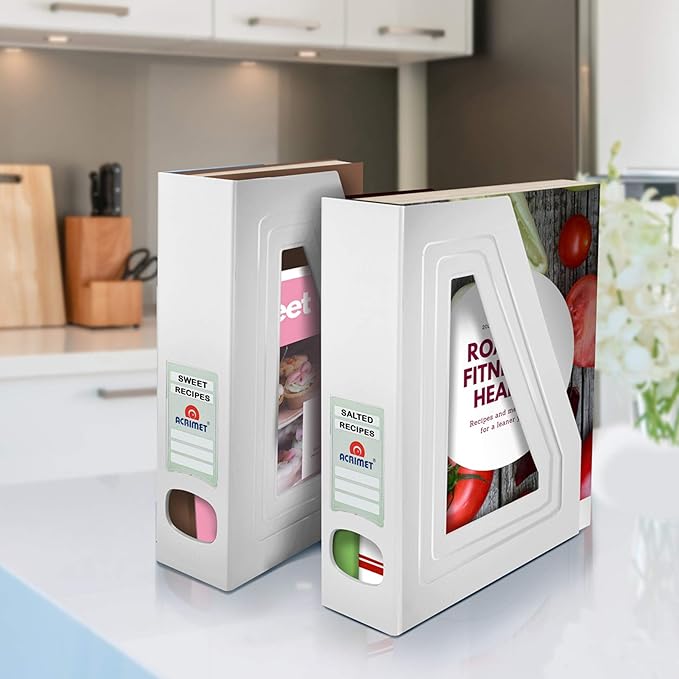 Acrimet Magazine File Holder, Durable Rack, Space-Saving Organizer (Plastic) (White Color) (2 pack)
