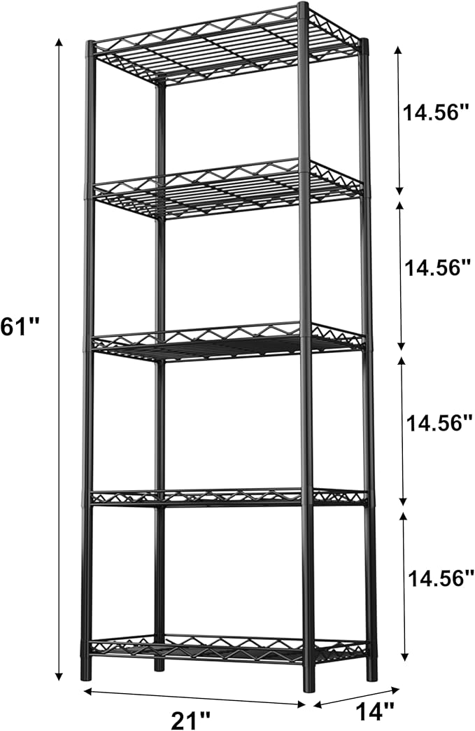 HOMEFORT 5-Tier Wire Shelving 5 Shelves Unit Metal Storage Rack Durable Organizer Perfect for Pantry Closet Kitchen Laundry Organization in Black,21”Wx14”Dx61”H