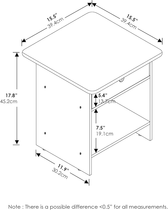- Item Dimensions : 15.5L x 15.5W x 17.8H inches. Material : Engineered Wood. Assembly required