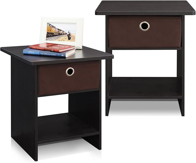Furinno Dario End Table / Side Table / Night Stand / Bedside Table with Bin Drawer, 2-Pack, Espresso/Brown