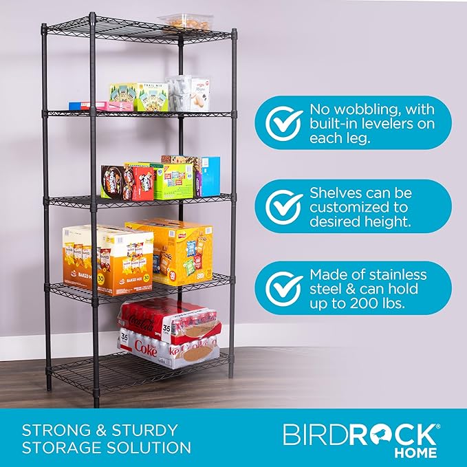 - DURABLE STEEL CONSTRUCTION: Crafted from robust steel with a sleek black coating, this shelf unit ensures strength and stability. Each shelf can hold up to 200 lbs., making it ideal for heavy items in homes or industrial settings without bending.