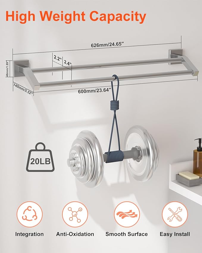 - 【SUS304 stainless steel】Double towel racks constructed of SUS304 stainless steel; steel material features high hardness, corrosion and rust resistance, strong and durable properties ensure long service life.