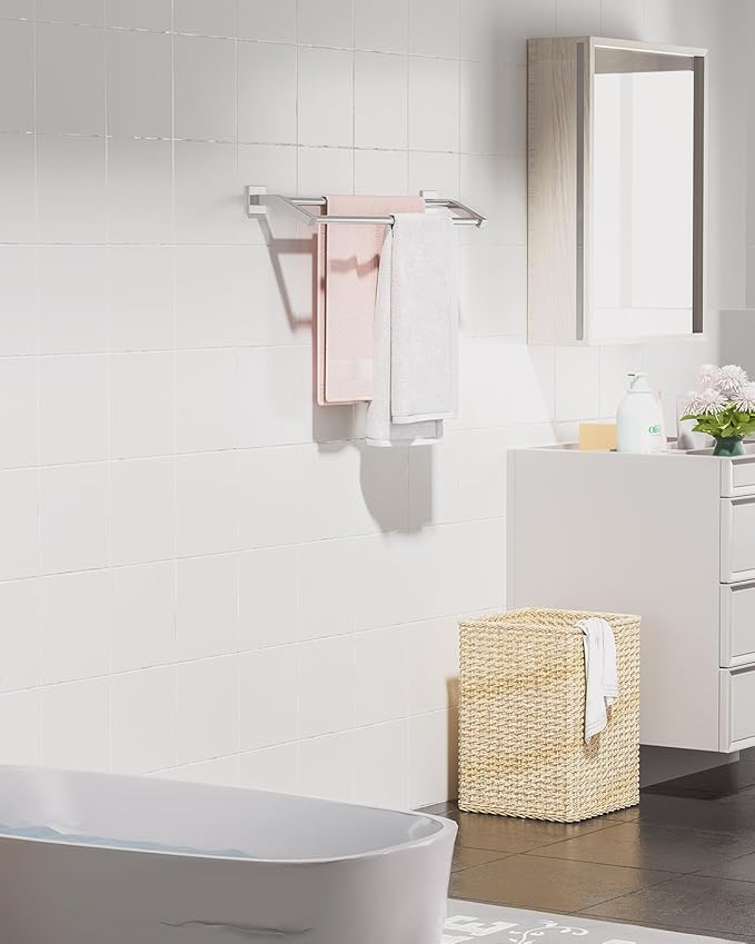 Alise Bath Double Towel Bars Towel Racks for Bathroom,Wall Mount Towel Holder Heavy Duty SUS304 Stainless Steel Towel Hanger Towel Rail,Brushed Nickel,24 Inch