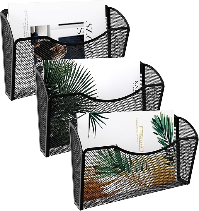 EasyPAG 3 Pack Wall File Holder, Single Mesh Hanging File Organizer for A4 Letter Size Paper, Wall Mount Paperwork Basket for Office, Home, School, Black