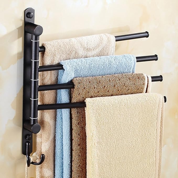 ELLO&ALLO Oil Rubbed Bronze Towel Bars for Bathroom Wall Mounted Swivel Towel Rack Holder with Hooks 4-Arm