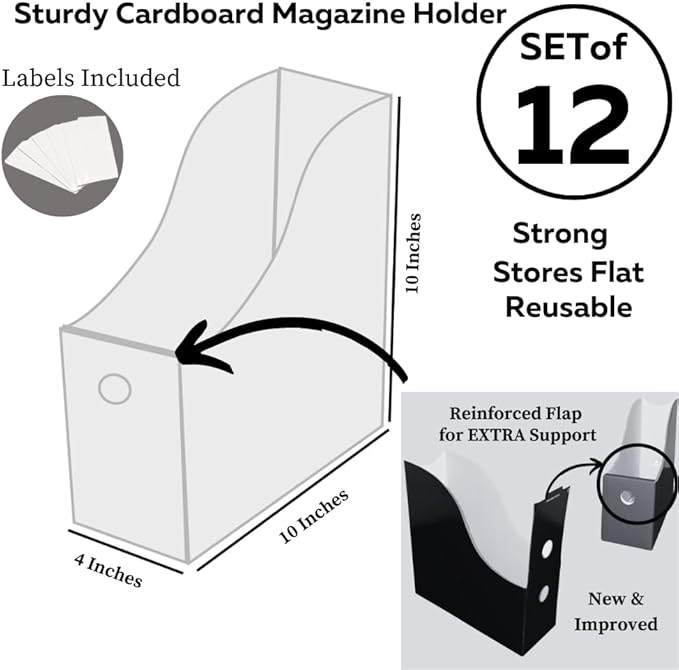 - STURDY REINFORCED FRONT FLAP FOR EXTRA SUPPORT : No more desk clutter. Made of heavy duty coated cardboard. Holds standard letter size files and magazines. Sold on Amazon for over 9 years