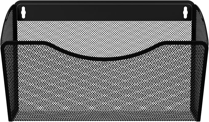 EasyPAG Wall File Holder, Single Mesh Hanging File Organizer for A4 Letter Size Paper, Wall Mount Paperwork Basket for Office, Home, School, Black