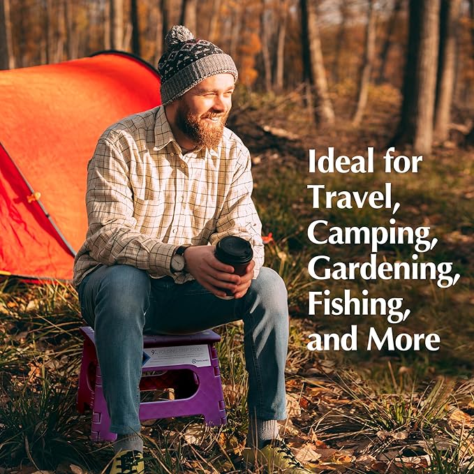 - SPACE-SAVING DESIGN: Easy to fold and slim enough to fit in tight spaces, the folding stool is perfect for small apartments or cluttered homes. Store it in a drawer, between appliances, or even under the bed