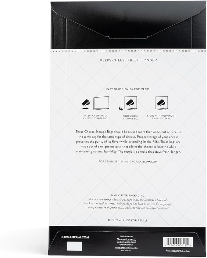 - PROFESSIONAL CHEESE PRESERVATION: Stop cheese waste with Formaticum cheese storage bags designed for artisanal cheese care. These French-made cheese papers prevent ammonia flavors and spoilage caused by improper storage. Our 6.25"x11" reusable food bags are great for cheese boards, entertaining, and everyday cheese storage needs. Protect your investment in quality cheese with professional storage methods.