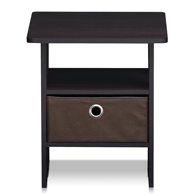 Furinno Andrey End Table / Side Table / Night Stand / Bedside Table with Bin Drawer, Dark Walnut, 1-Pack, Center Bin