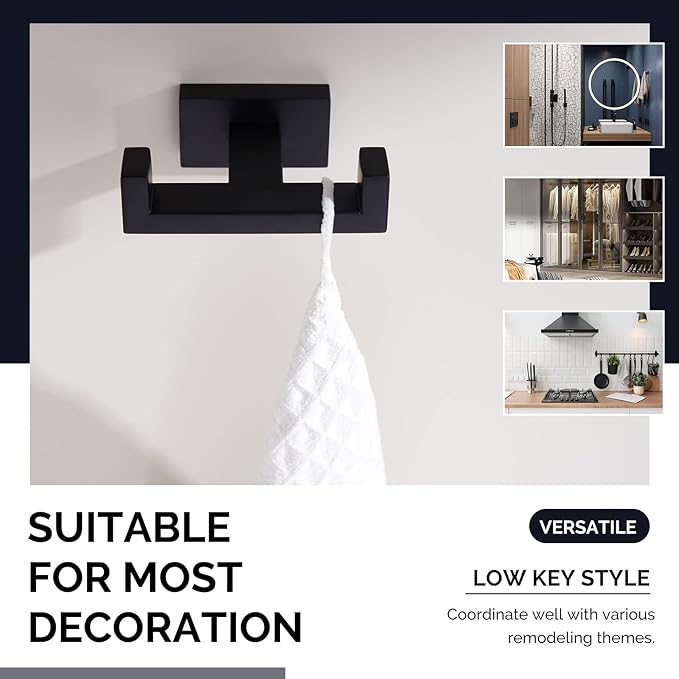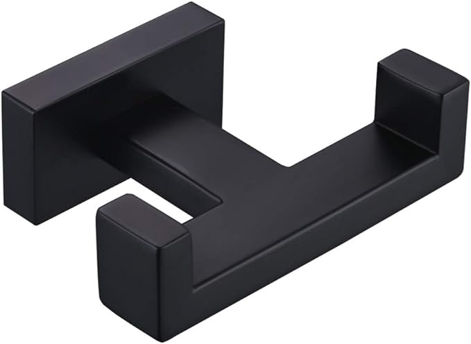 Angle Simple Double Towel Hook Matte Black, Stainless Steel Bathroom Towel Holder, Coat Robe Hook Wall Mount