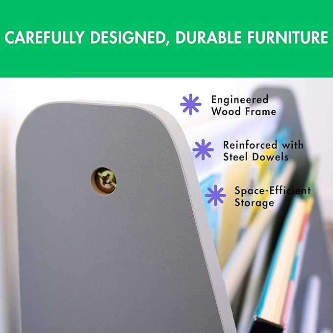 - Durable & Easy to Clean: Made from sturdy engineered wood, this nursery bookshelf is built to last. The easy-to-clean surface ensures it stays looking new. Simple assembly with all hardware included makes it a reliable addition to any child's room.
