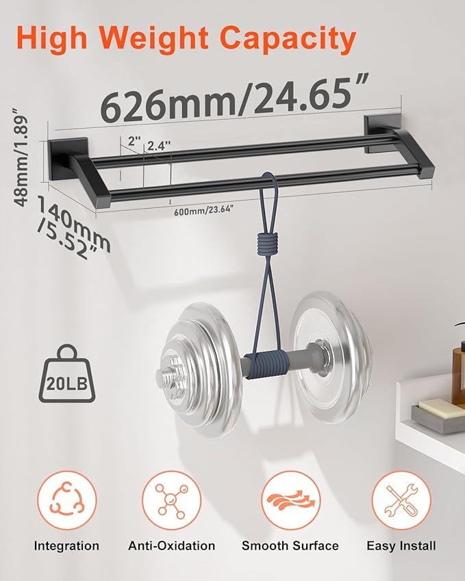 - 【Matte Black Finished】The towel hanger is finished by ultra high temperature matte black spray painting technology, smooth and beautiful surface, not easy to oxidation, fading and paint off.