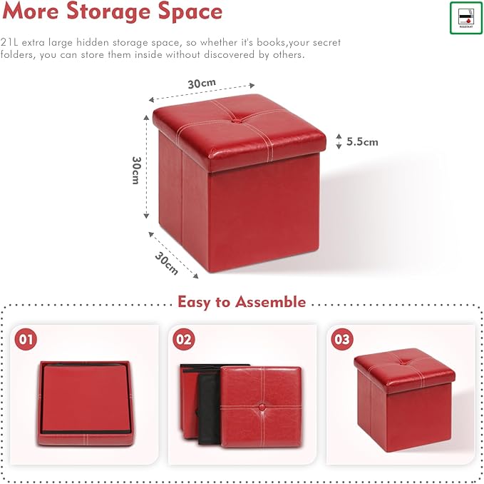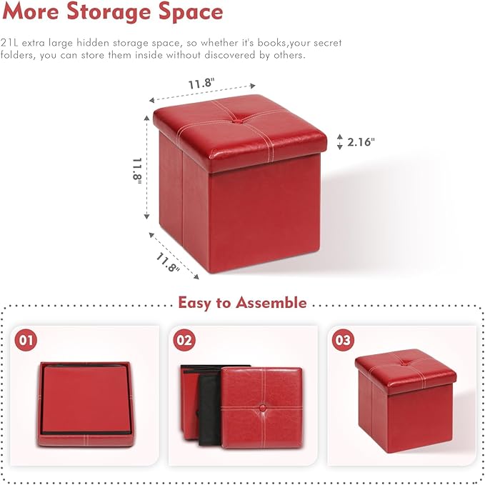 B FSOBEIIALEO Folding Storage Ottoman, Faux Leather Footrest Seat Coffee Table Toy Chest for Kids, Red 11.8"x11.8"x11.8"