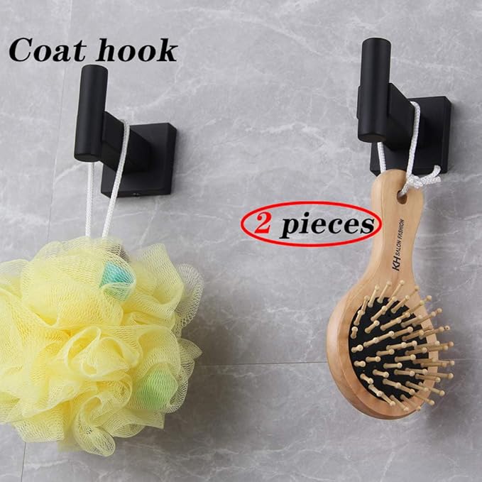 GERZWY Bathroom Matte Black Coat Hook SUS 304 Stainless Steel Single Towel/Robe Clothes Hook for Bath Kitchen Garage Heavy Duty Contemporary Hotel Style Wall Mounted 2 Pack DG1407-BK