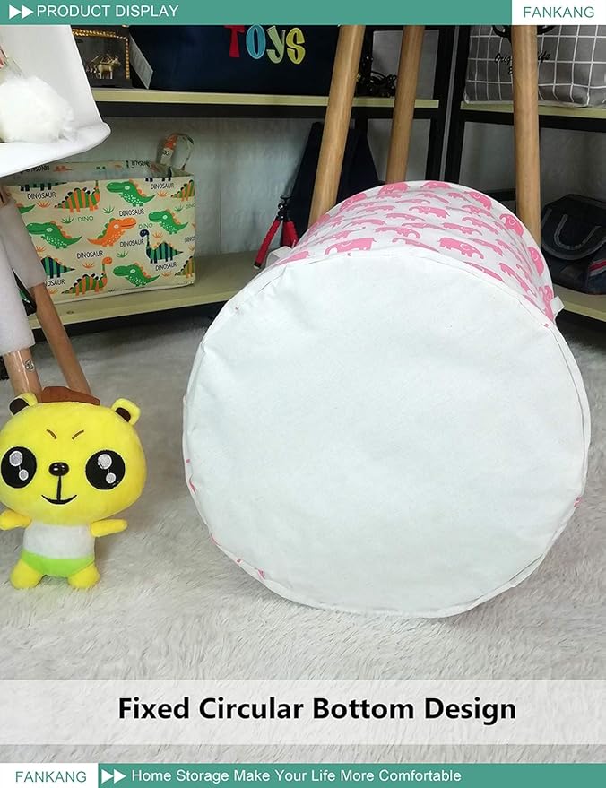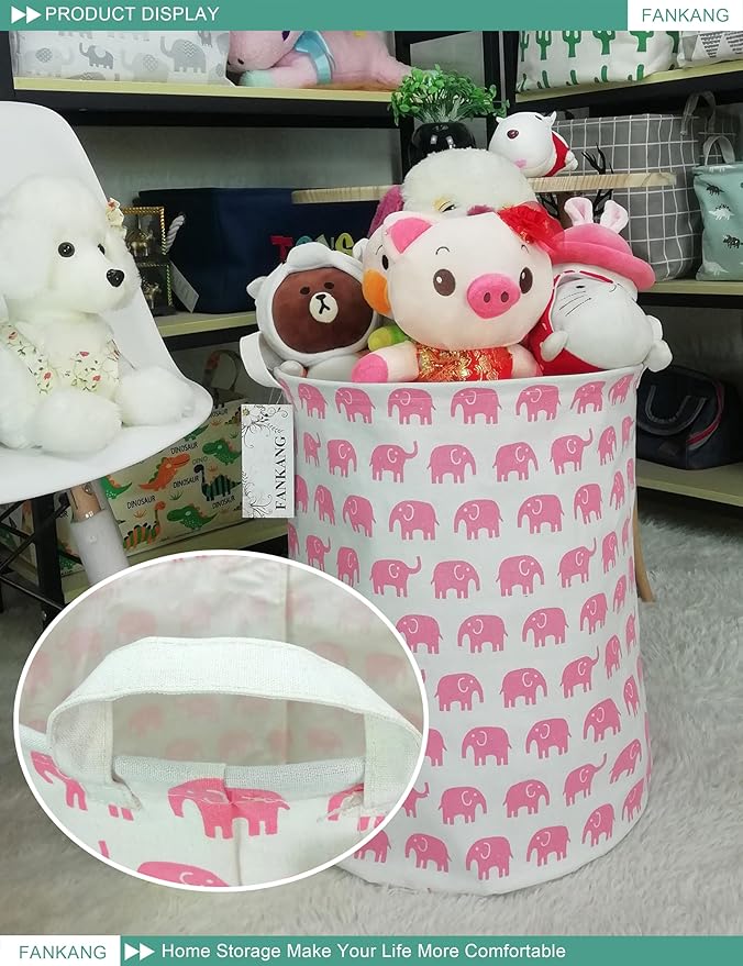 FANKANG Storage Basket, Nursery Hamper Canvas Laundry Basket Foldable with Waterproof PE Coating Large Storage Baskets for Kids Boys and Girls, Office, Bedroom, Clothes,Toys(Pink Elephant)
