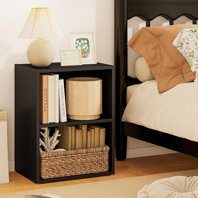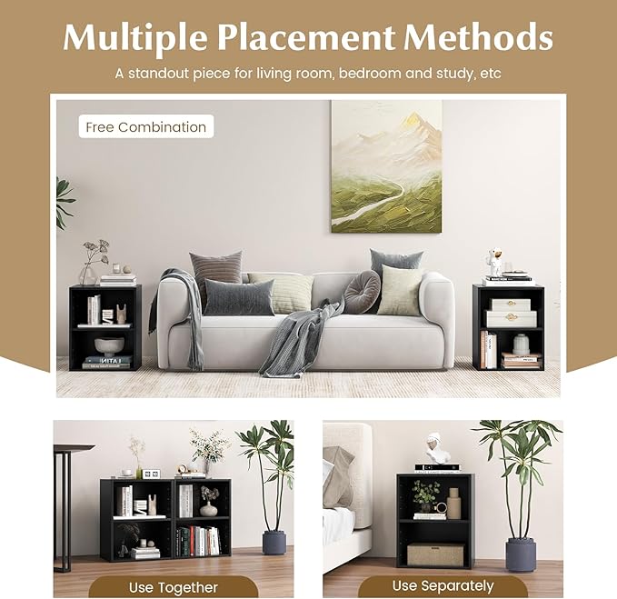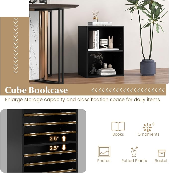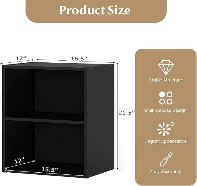Giantex 2 Cube Bookshelf and Bookcase, 2-Layer Storage Shelf w/Large-Capacity Open Storage Space, MDF P2 Veneer, for Living Room Bedroom Study Office Multi-Functional Furniture Display Cabinet, Black