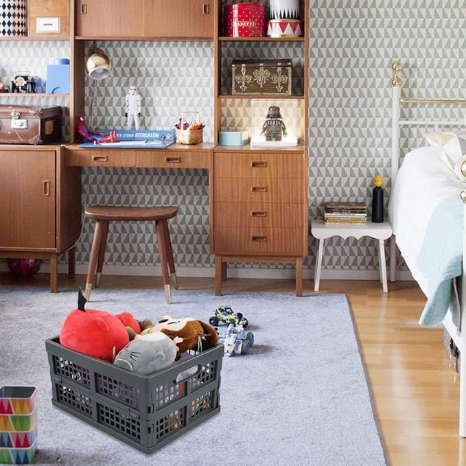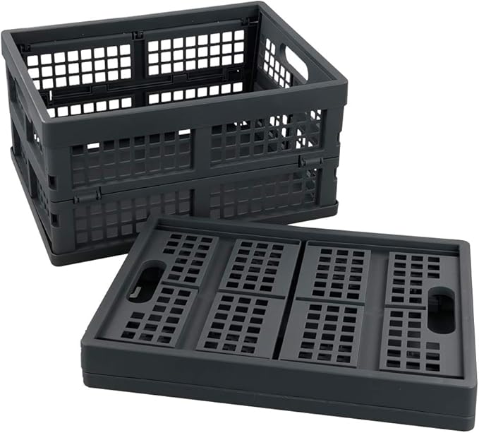 Ggbin 16 Liter Folding Plastic Containers, Grey Plastic Crate, 2 Packs