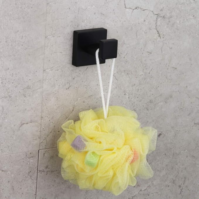 GERZWY Bathroom Matte Black Coat Hook SUS 304 Stainless Steel Single Towel/Robe Clothes Hook for Bath Modern Style Wall Mounted 2 Pack FG1607-2BK
