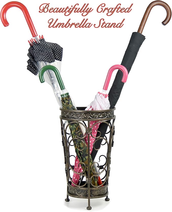 Dualplex Super Quality Umbrella Stand, Umbrella Holder Antique Look Metal Entry Hallway Décor, Wallside Style w/Removable Drip Tray Home Office Decoration Rack Holds Umbrellas Canes Walking Stick
