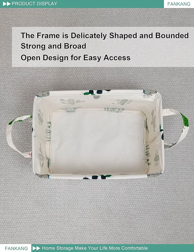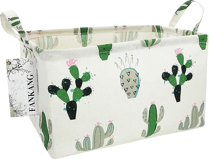 FANKANG Storage Basket,Nursery Hamper Canvas Laundry Basket Foldable with Waterproof PE Coating Storage, Office, Bedroom, Clothes,Toys (L, Rec-Cactus)