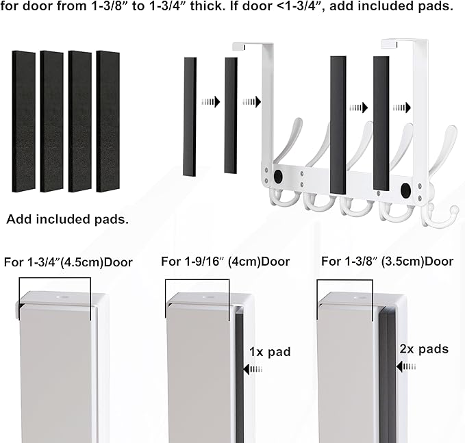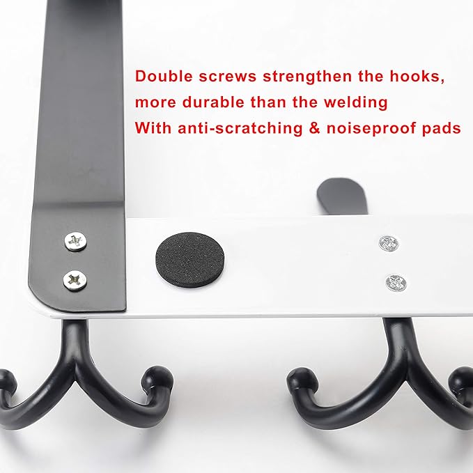 - 5. Easy to install and assembly required, including 2 x over door hooks, with anti-scratching pads, white and black color.