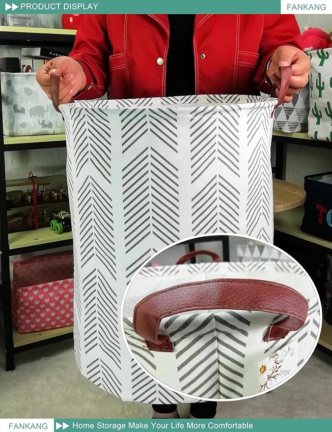 FANKANG Storage Basket, Nursery Hamper Canvas Laundry Basket Foldable with Waterproof PE Coating Large Storage Baskets for Kids Boys and Girls, Office, Bedroom, Clothes,Toys(Grey arrowhead)