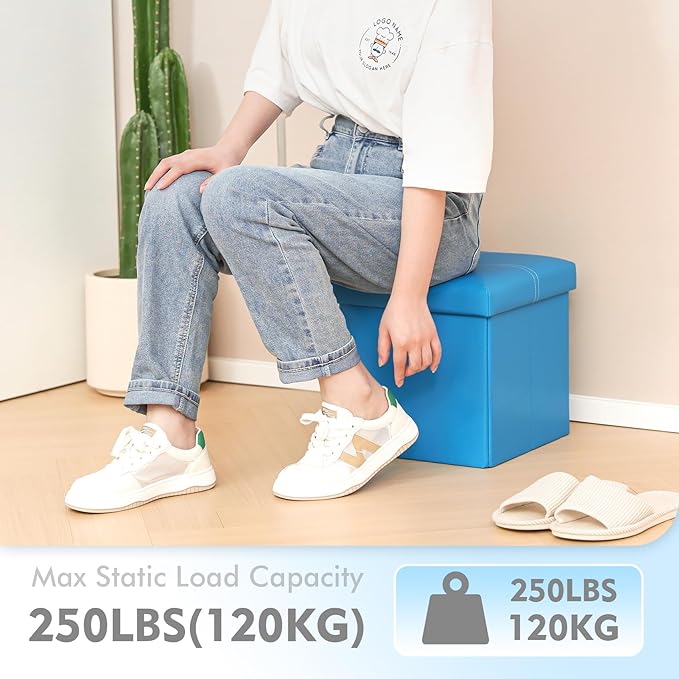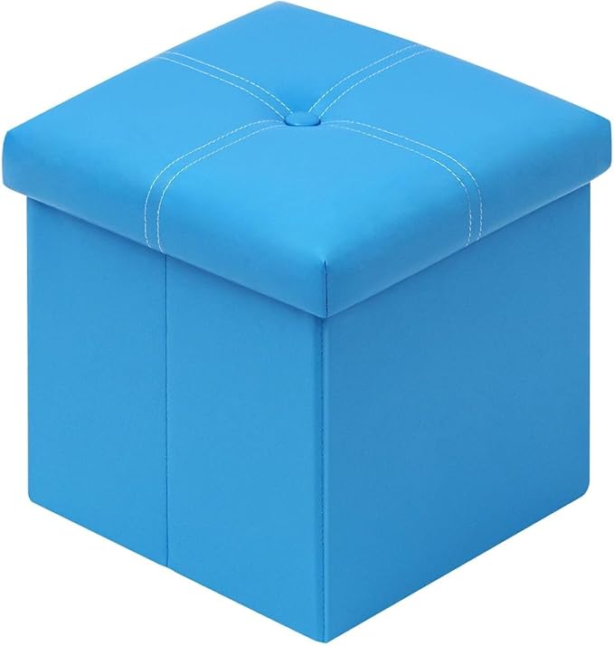 B FSOBEIIALEO Folding Storage Ottoman, Faux Leather Footrest Seat Coffee Table Toy Chest Kids, Blue 11.8"x11.8"x11.8"
