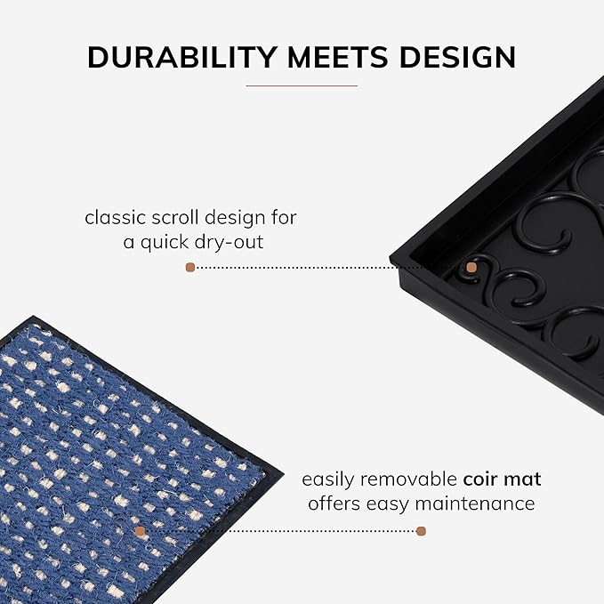 - Made using 100% Woven Coir: This rubber boot tray is meticulously crafted using 100% woven coir (coconut fiber), offering a sustainable and durable solution for your home. The natural fibers of coir are renowned for their toughness and ability to withstand daily wear and tear, ensuring that this boot tray for entryway remains a functional and eco-friendly addition for years to come.