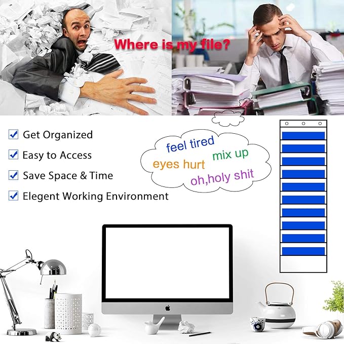 - Efficient Organization: This hanging folder organizer is brilliantly designed to make the file folders clearly visible and orderly, housing all your essentials in the hanging pocket organizer for rapid retrieval, ensuring everything stays spick and span while freeing up desk and countertop space.