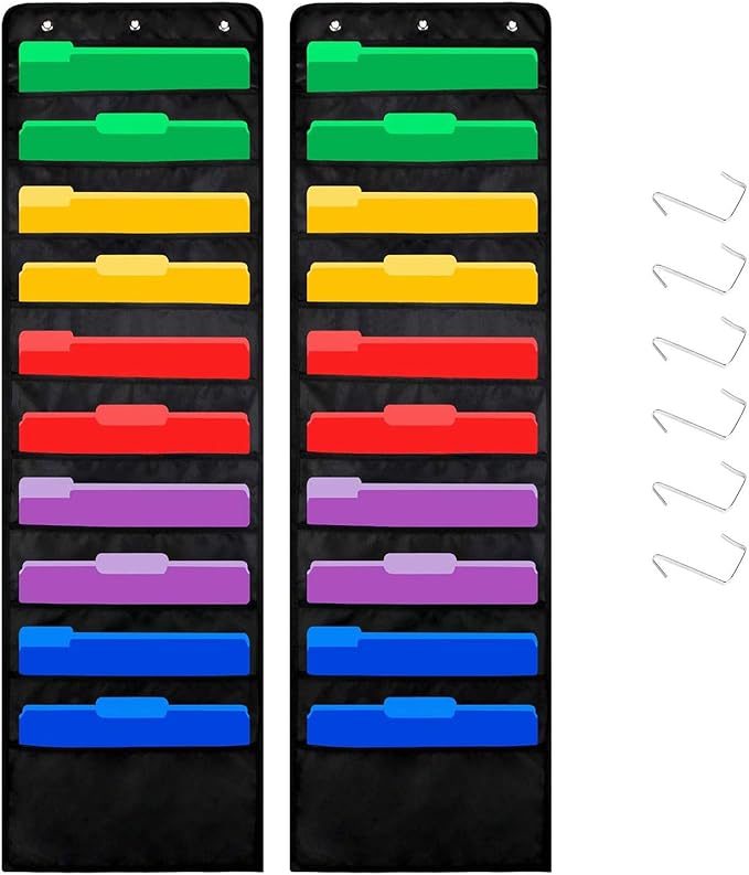 - Package Contains: ready to seize 2 state-of-the-art storage pocket charts with over door hangers, each wielding 10 stalwart pockets for your treasures and daily essentials; Ideal for seekers of classroom, office, or even domestic deployment; Please note: the file folders have not been included.