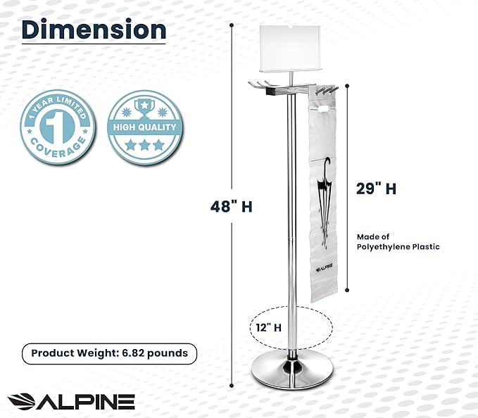 - Customizable Sign Feature: Alpine umbrella holder for entryway comes with an easily customizable sign holder, allowing for personalized messages or branding, making it not just a wet umbrella bags stand but also a marketing asset for your space.