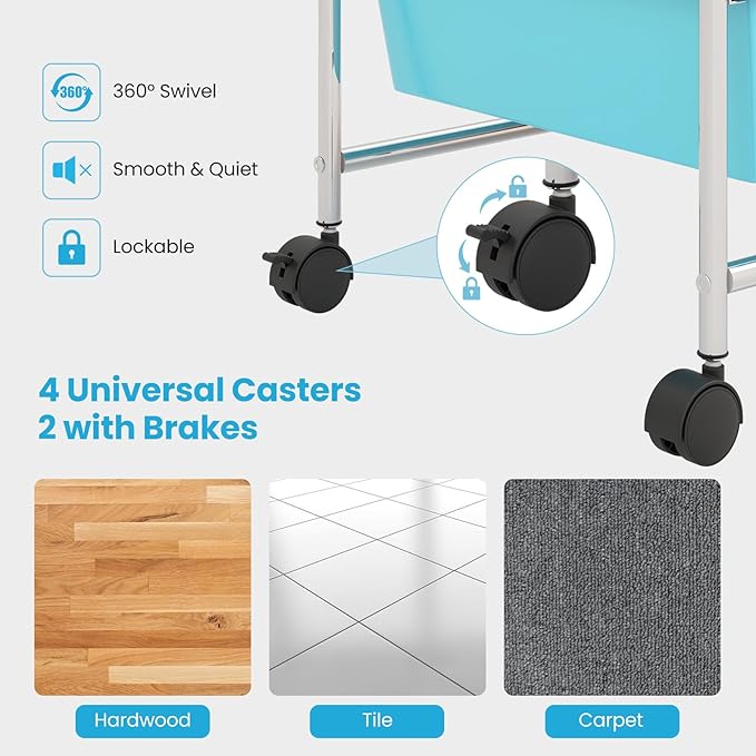 - [Flexible Casters & Firm Brakes]: Featuring 4 flexible castors, this rolling cart is able to rotate 360 degrees and move easily to any corner. Besides, brakes on 2 castors greatly help you secure firmness and stability. Moreover, smooth surface of castors effectively prevent the floor from being scratched while the cart is moving.