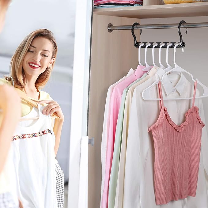 - Space Saving Clothes Hangers - Don’t worry about your most valued clothes, our magic hangers can help you organize your closet, so you can easily find your favorite dress. Perfect for downsizing: rooms, dorms, and apartments with limited storage space. You can store multiple garments on a single magic hanger rack, keeping clothes organized and wrinkle-free.