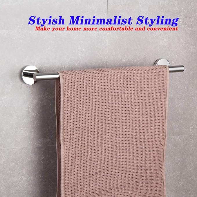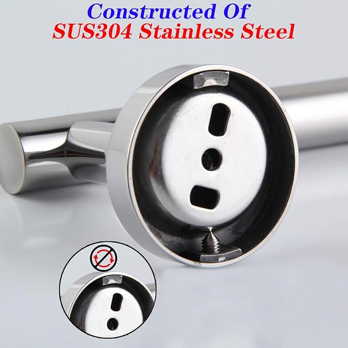 - Modern round design, sus304 stainless towel bar with round base and double bolt installation make more stable. Concealed Screw Mount, the mounting screws are hidden and out of sight.