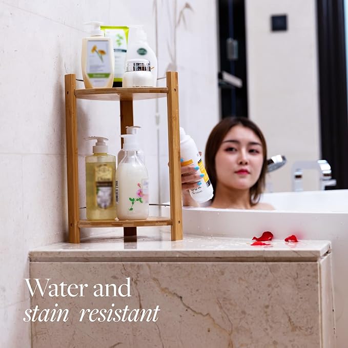 - Built to Last: The shower corner caddy is made from 100% natural bamboo that is stronger and more durable than wood. It features protective layers of waterproof coating and its stainless steel wires prevent your shampoo and lotions from falling out