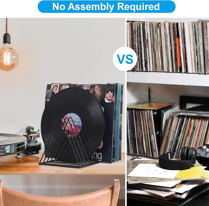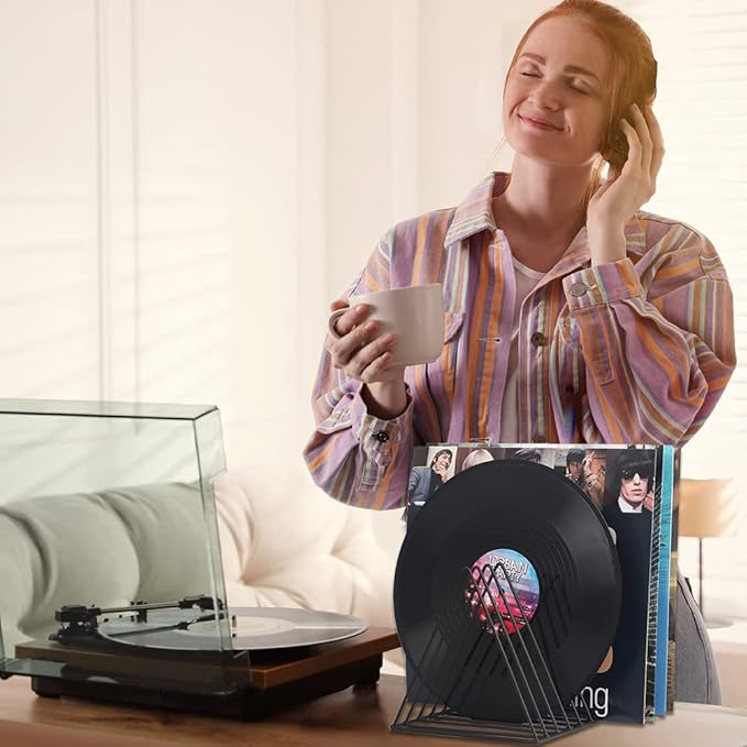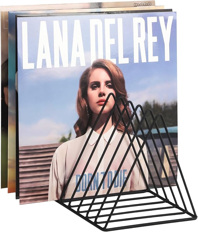 EASEPRES Vinyl Record Holder Storage, 9 Slot Metal Magazine Book Album Display Rack, Stylish Triangle Desktop File Sorter Organizer for Home Office, Black