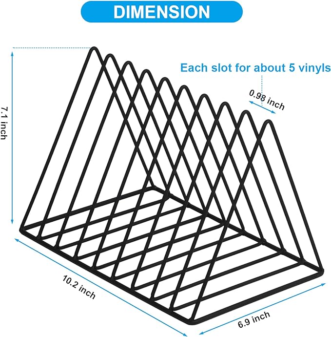 - Great Space Saver - Size:10.2x7.1x6.9 inches, distance between each slot:0.98 inches. Triangle shape maintains great stability, 9 slots rack holds tons of stuff and doesn't take up too much space
