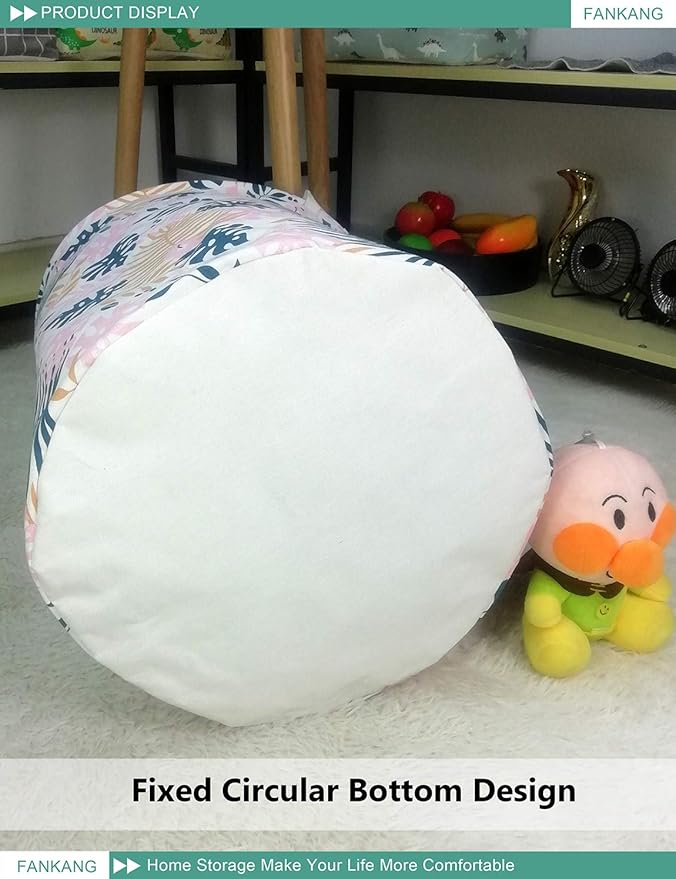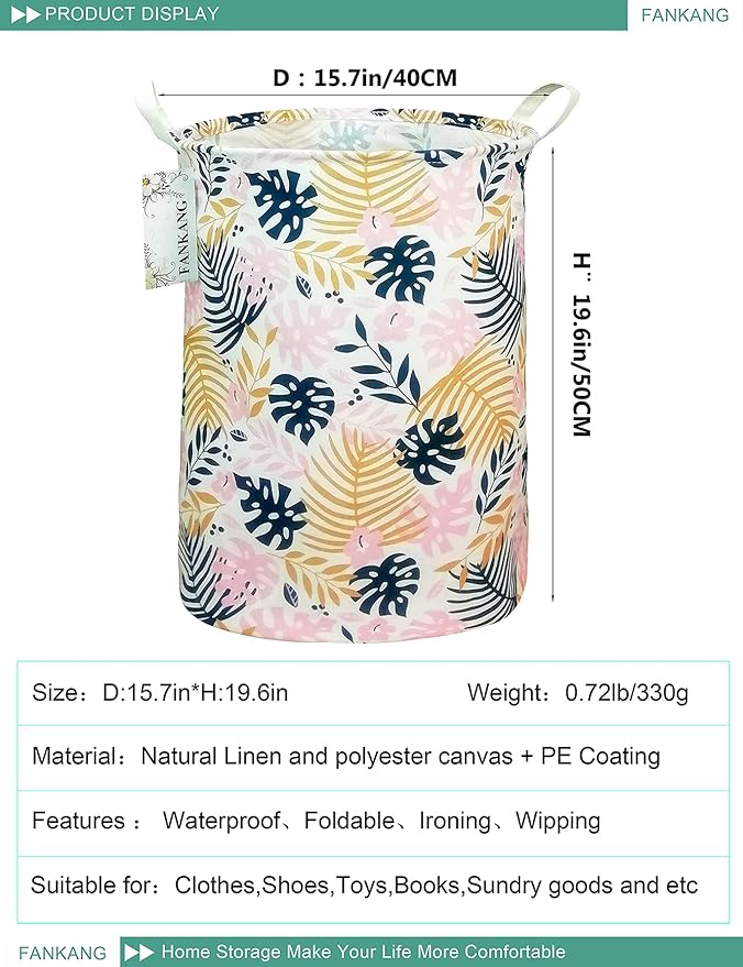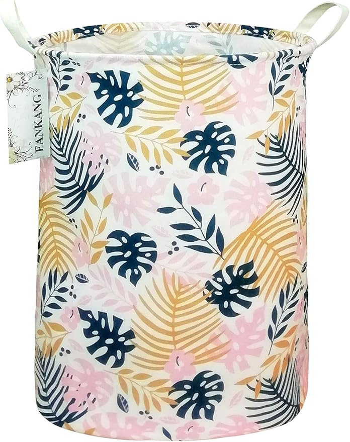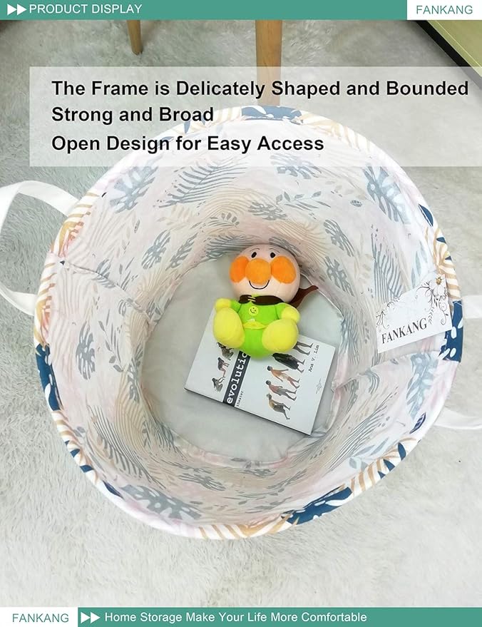 FANKANG Storage Basket, Nursery Hamper Canvas Laundry Basket Foldable with Waterproof PE Coating Large Storage Baskets for Kids Boys and Girls, Office, Bedroom, Clothes,Toys(Banana leaf)