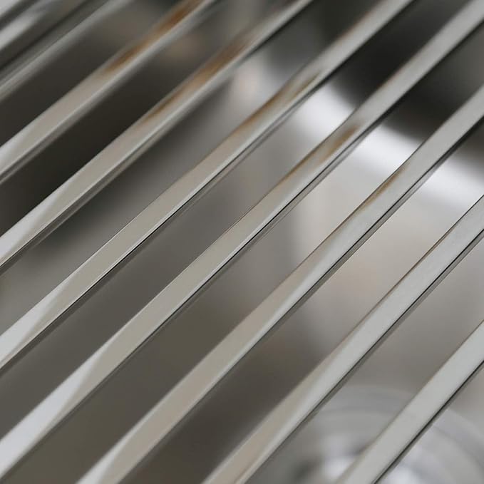 - Displayed Dimension: 20.5"(L)x13.4"(W)X 0.5''(H). 14pcs tough SUS304 rectangular stainless steel pipes. Color: Balck/Silver.Please kindly measure your sink size firstly before purchasing this Dish Drying Rack! Great Gift for Mother's Day, Father's Day, family menbers and all festivals Gifts
